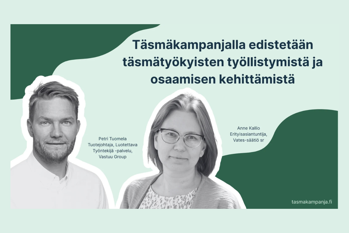 Vastuu Groupin, Vates-säätiön ja Oppien kohti työtä -hankkeen käynnistämän Täsmäkampanjan tavoitteena on tehdä työelämästä saavutettavampaa.