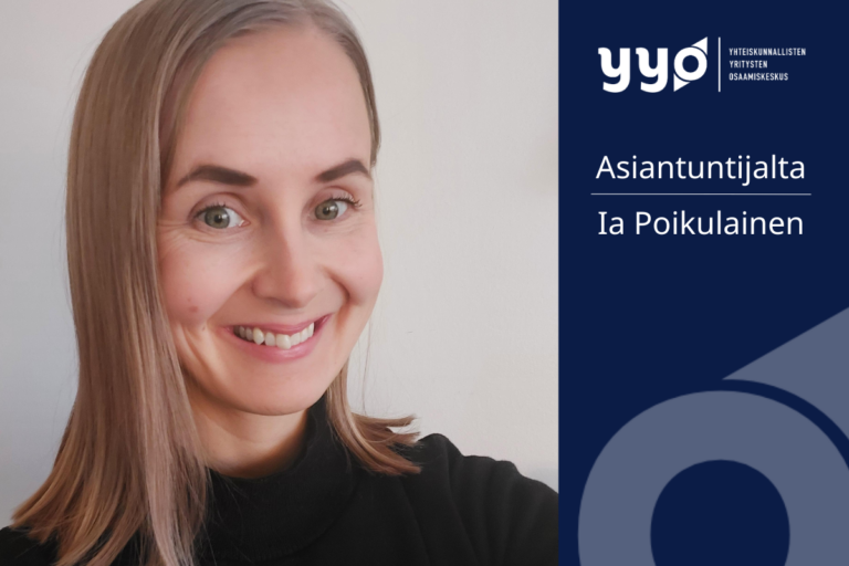 Ia Poikulainen työskentelee Yhteiskunnallisten yritysten liitto ARVO ry:ssä kehityspäällikkönä. YYO:ssa Ia toimii neuvonnan, ohjauksen ja valmennuksen parissa vastaten muun muassa asiantuntijaverkoston toiminnasta.