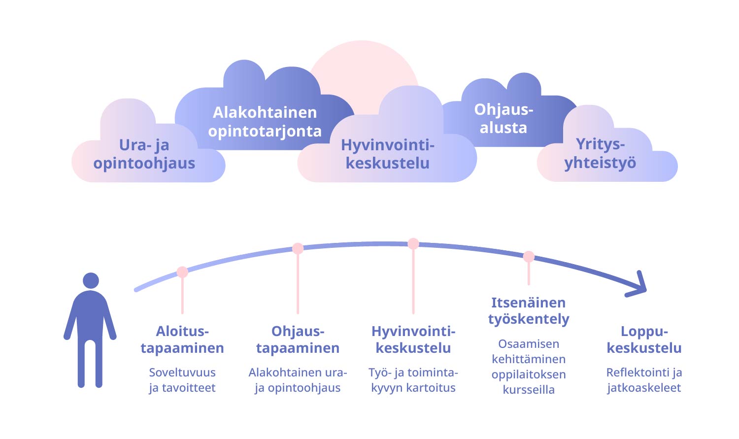 URAOHJAIN+ on uudenlainen kestävän työllistymisen malli. Se koostuu yksilöllisestä työllistymistä tukevasta palvelusta, jossa yhdistyvät osaamisen kehittäminen, urasuunnittelu, systemaattinen työnhaku ja hyvinvointi.
